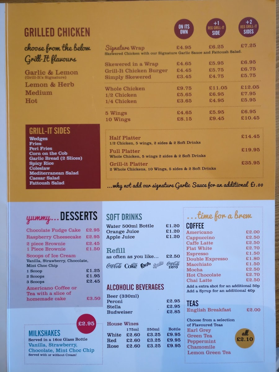 Don't miss the enticing sides like Corn On The Cob and Garlic Bread, perfect for enhancing your meal. Customers rave about the quick service and generous portions, making it an ideal spot for gatherings or family meals. The modern, stylish indoor seating and lovely outdoor space add to the charm. With reasonable prices and exceptional service, Grill-It Newbridge is a must-visit for anyone seeking flavorful and fresh dishes!